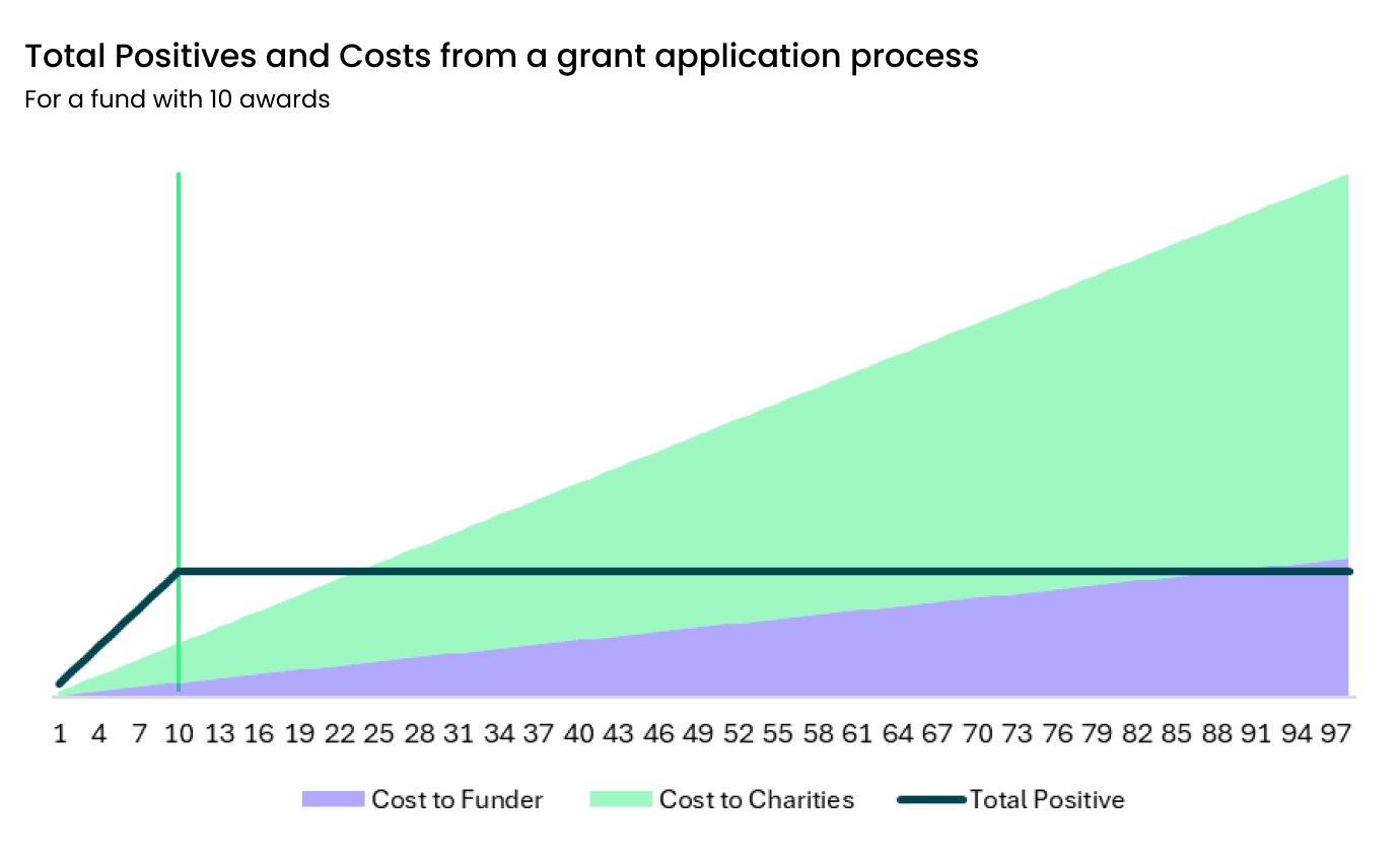 To make it worthwhile, this “expected value” must be higher than the cost of applying to the grant. But as charities have limited resources, they also need to make this assessment across all potential grants, and select the grants that have the highest “expected value” once you subtract the application cost.