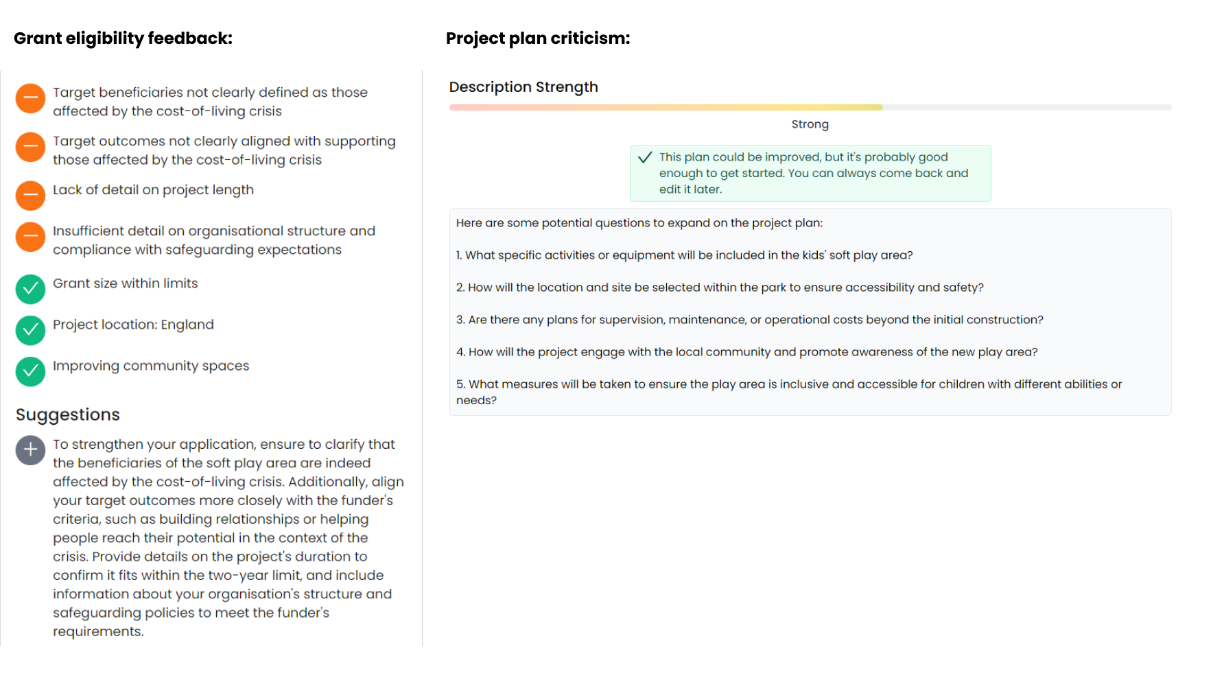 Essentially, we’re aiming to help charities generate high-quality, but low-effort and low cost applications. So every charity can afford to apply for the funding they need to fill the holes in their budgets left from a cost of living crisis, without needing to waste as much time and money on the process.